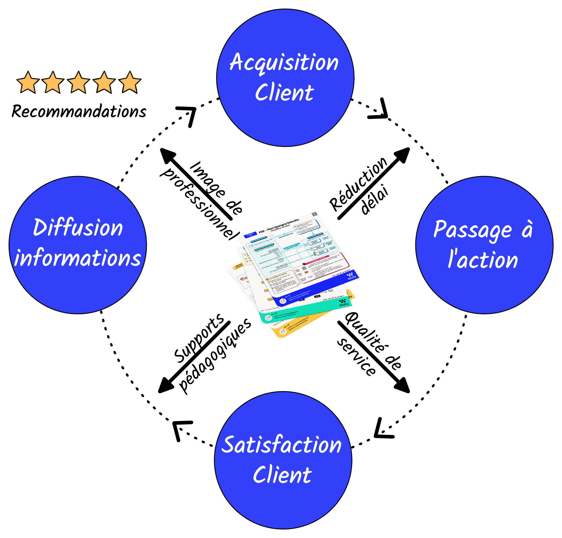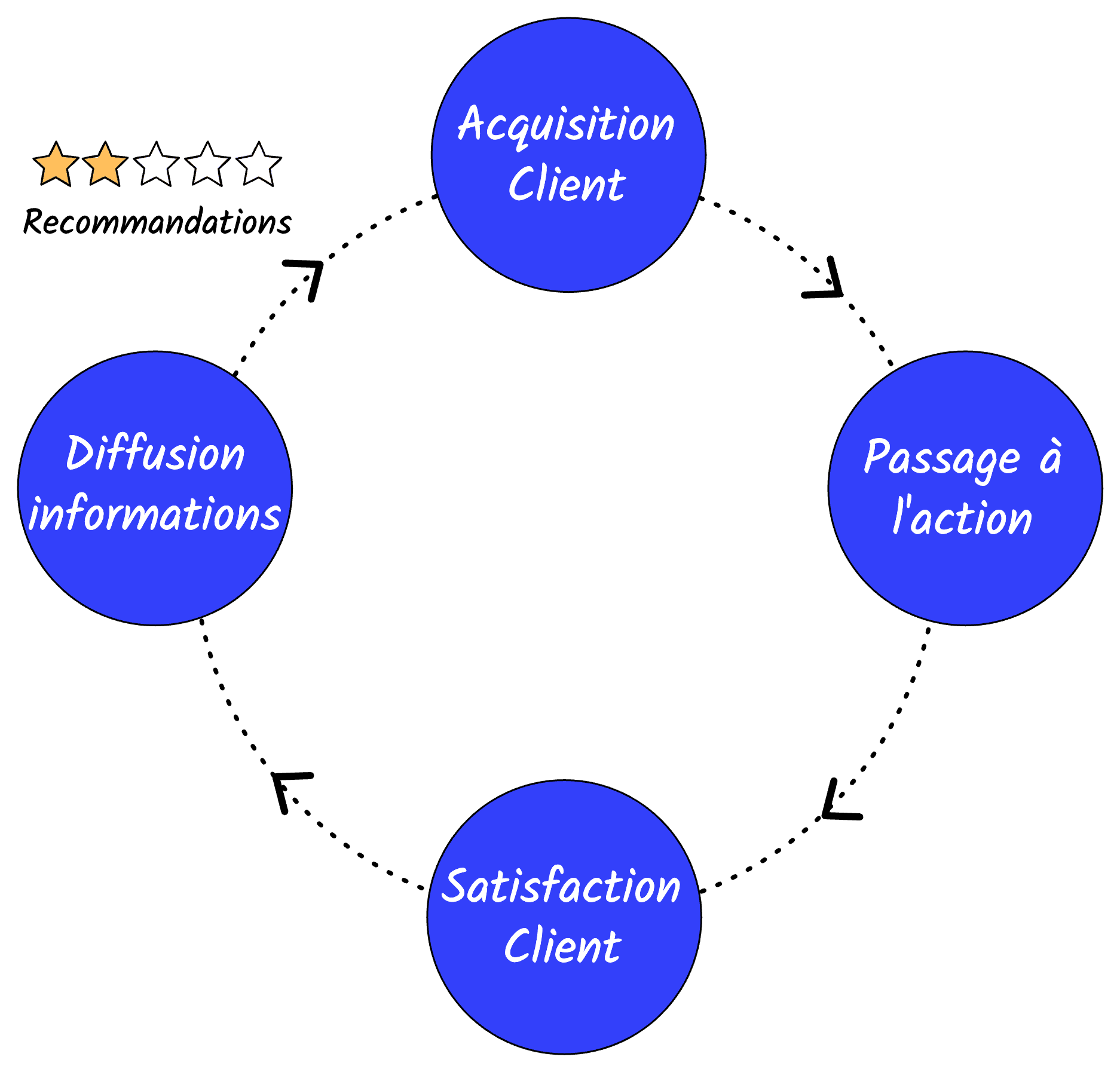 Acquisition client → Passage à l’action → Satisfaction client → Diffusion des informations