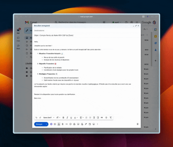 Grâce à des explications plus claires, ton client comprend mieux les stratégies d'investissement proposées et se sent plus en confiance pour prendre des initiatives.